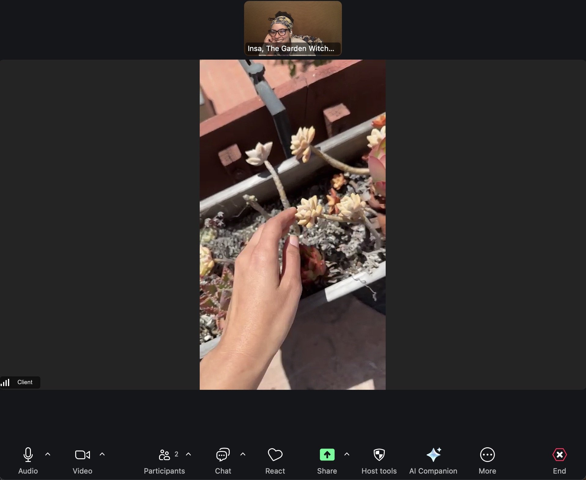 You in your garden. Me on Zoom.